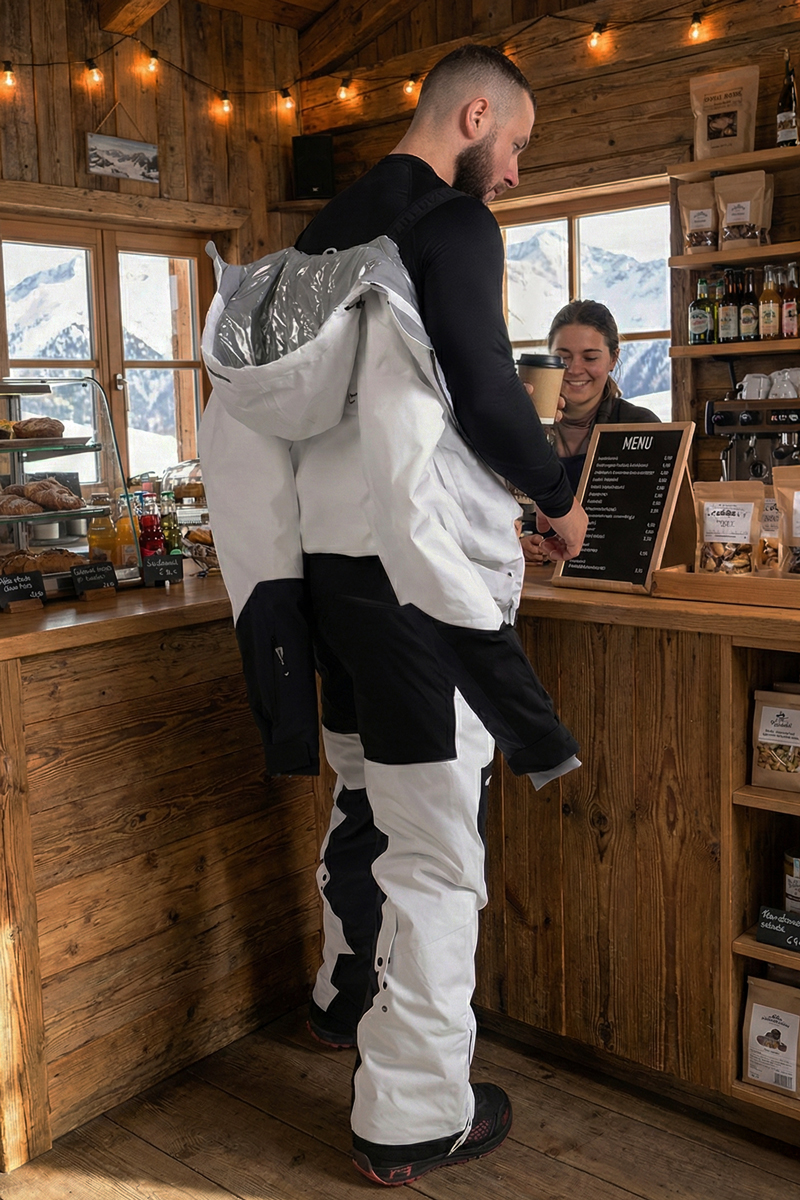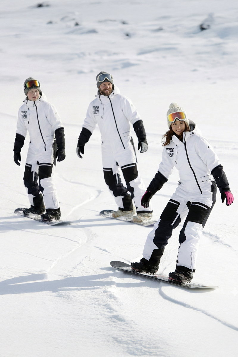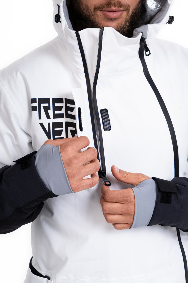 Комбінезон оснащений регульованим поясом, водонепроникними блискавками, вентиляцією, проклеєними швами та внутрішніми манжетами, забезпечуючи комфорт та повний захист від вологи та вітру. Білий колір із контрастними чорними вставками підкреслює спортивний стиль та сучасний дизайн Freever.