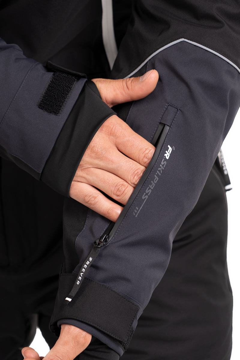 Додаткова вентиляція, водонепроникні блискавки, проклеєні шви, внутрішні манжети та регульований пояс забезпечують комфорт та надійну посадку. Стильний чорний колір та контрастні деталі роблять модель практичною та візуально ефектною – для професіоналів та любителів активного відпочинку.