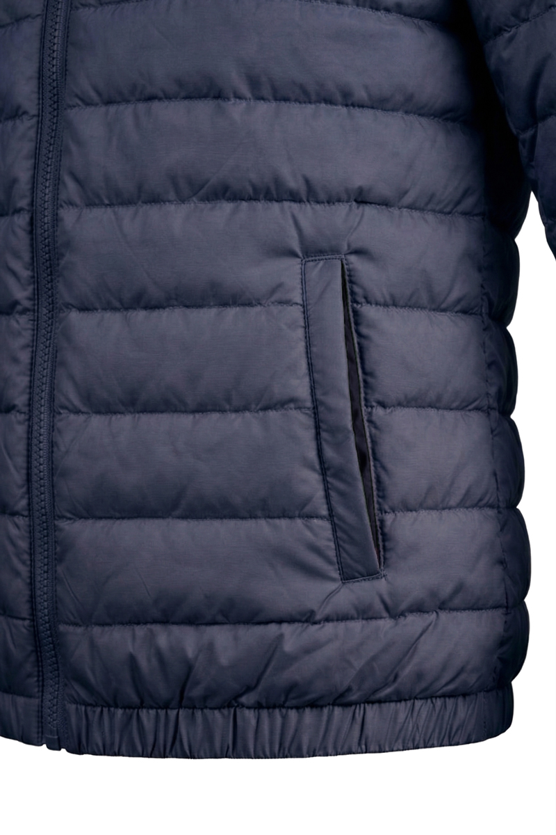 Верх виконаний зі 100% поліестеру, що забезпечує зносостійкість та практичність у щоденному використанні. Утеплювач із поліефірного волокна ефективно утримує тепло, залишаючись легким і дихаючим. Куртка має прямий крій із еластичною резинкою по низу для кращої посадки та захисту від вітру.