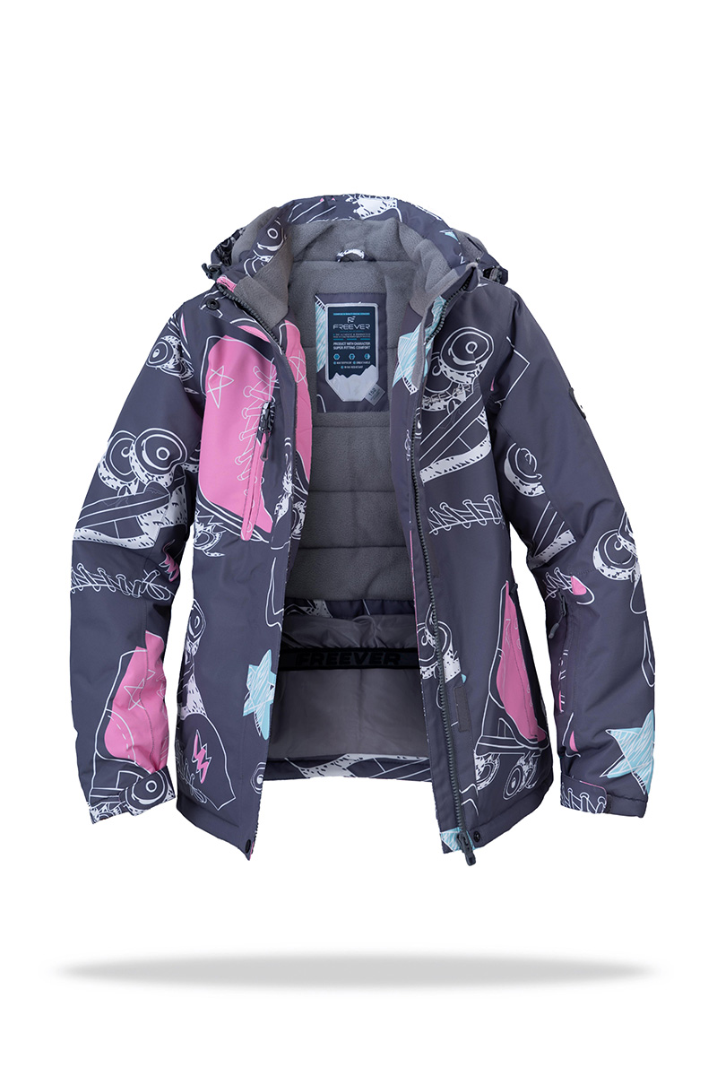 Дитячий лижний костюм FREEVER SF 21602 сірий — дозволить кататися в найхолодніші зимові дні з високим комфортом. Водонепроникна тканина з чудовою повітропроникністю, яка використовується в поєднанні з теплозберігаючою підкладкою на штучному утеплювачі гарантують сухість, тепло й комфорт незалежно від погодних умов і активності на слоні. Центральна блискавка на куртці прикрита вітрозахисною планкою на кнопках. Для повної герметичності всі критичні шви проклеєні. Є снігозахисна спідниця із силіконовим покриттям. На рукавах внутрішні еластичні й зовнішні регульовані на липучках манжети. Регульований капюшон і високий комір забезпечені м’якою флісовою підкладкою. Штани фіксуються на блискавку й гачки. Об’єм талії регулюється індивідуально. Передбачені петлі під ремінь і знімні підтяжки. Внутрішні еластичні й зовнішні регульовані на блискавках манжети перешкоджають проникненню снігу під одяг, і дозволяють легко одягати лижні черевики. У костюма багато зручних кишень. На куртці — 1 внутрішня і 4 зовнішніх, у тому числі на лівому рукаві кишеня для скі-пасу, і на штанах — 2 бічних кишені. Усі на водонепроникних блискавках.
