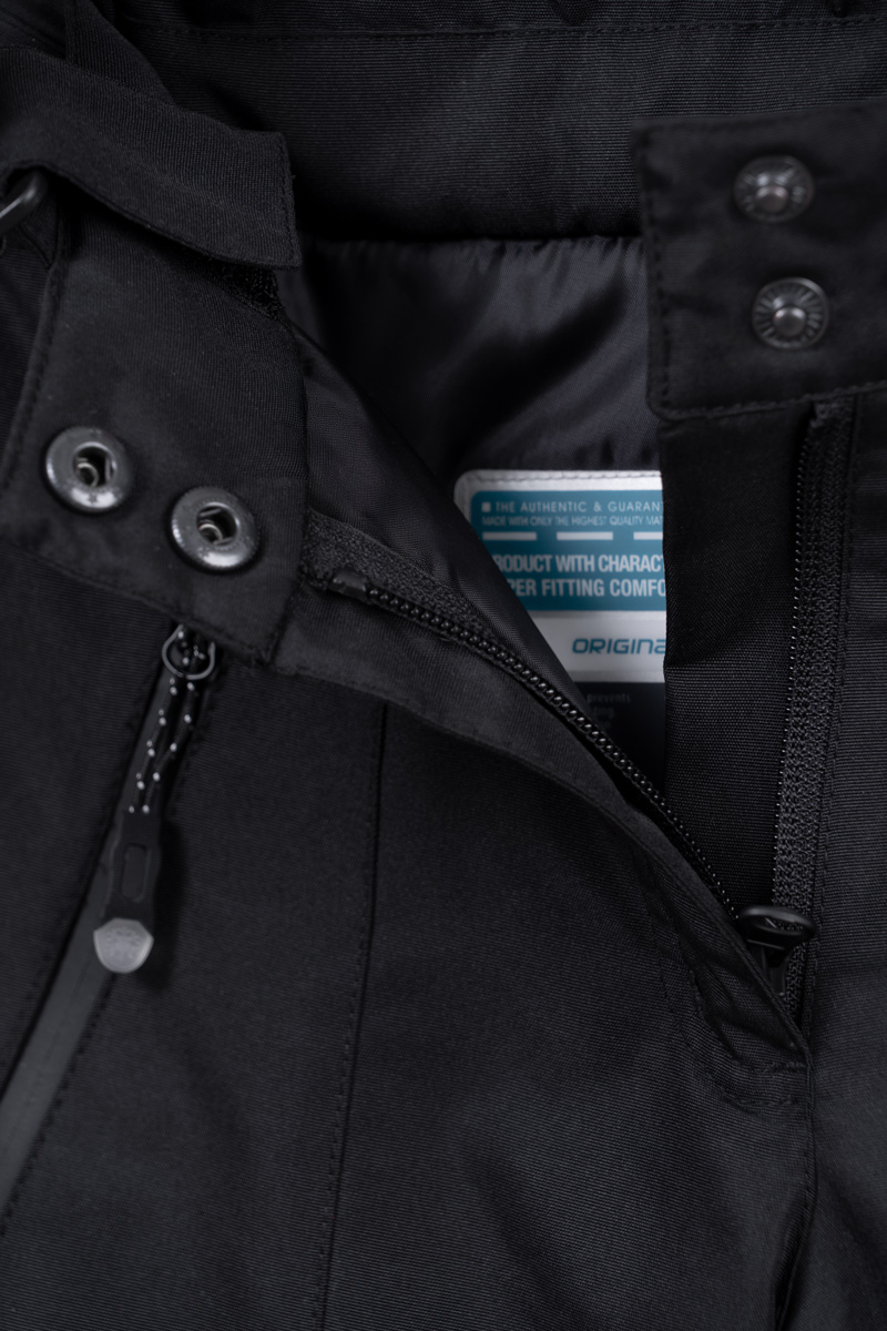 Утеплювач із поліефірного волокна щільністю 60 г/м² зберігає тепло в діапазоні температур від –20°C до +5°C, не перевантажуючи одяг. Брюки оснащені проклеєними швами, водонепроникними блискавками та артикульованими колінами для кращої посадки. Регульовані манжети, пояс і знімні підтяжки дозволяють індивідуально підлаштувати модель під дитину.