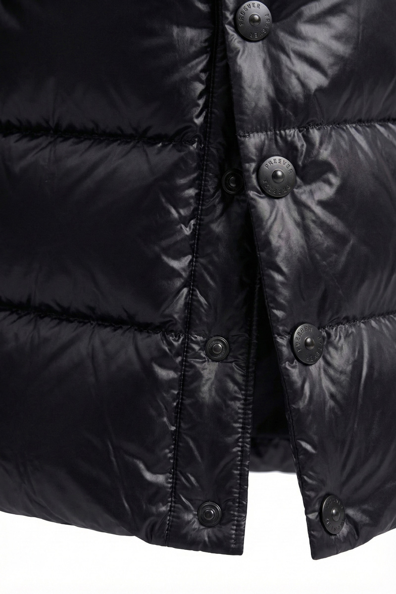 Жіноче пухове пальто Freever NF 2529 чорне — тепла і практична зимова модель, яка поєднує надійний захист від холоду і універсальний стиль. Виготовлено з міцного поліестеру з підкладкою TERMO SYSTEM, що зберігає тепло і забезпечує комфорт в морозні дні. Утеплювач — натуральний качиний пух (90% пух, 10% перо), який робить пальто легким і при цьому максимально теплим.
