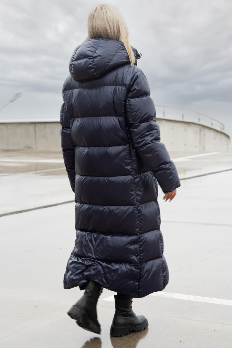 Жіноче пухове пальто Freever NF 2529 синє — стильна і практична зимова модель, створена для захисту від холоду і вітру. Виконано з міцного поліестеру з підкладкою TERMO SYSTEM, яка зберігає тепло і забезпечує комфорт навіть при низьких температурах. В якості утеплювача використовується натуральний качиний пух (90% пух, 10% перо), що робить пальто теплим і легким одночасно.