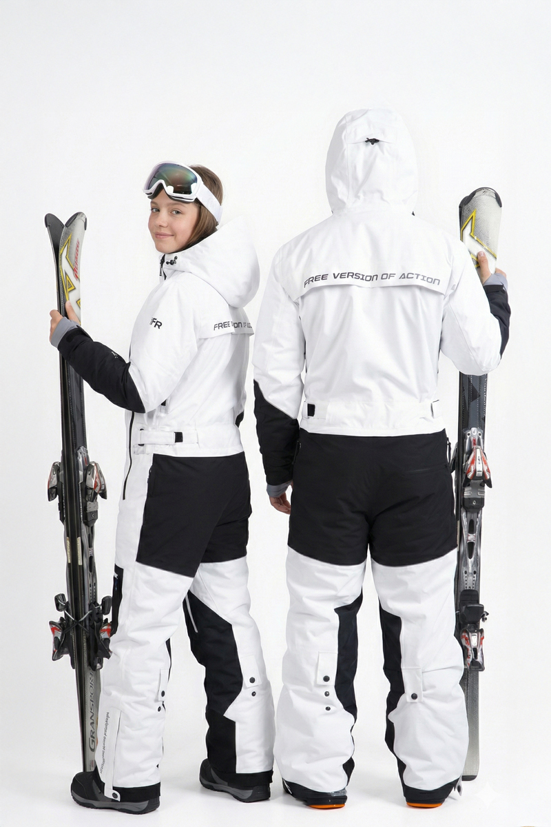 Конструкція комбінезона передбачає незнімний капюшон, внутрішні манжети, регульовані зовнішні манжети та пояс, а також артикуляцію колін для свободи рухів. Функціональність доповнюють п’ять кишень — одна внутрішня та чотири зовнішні, що робить модель практичною для гірськолижного спорту та зимового відпочинку.