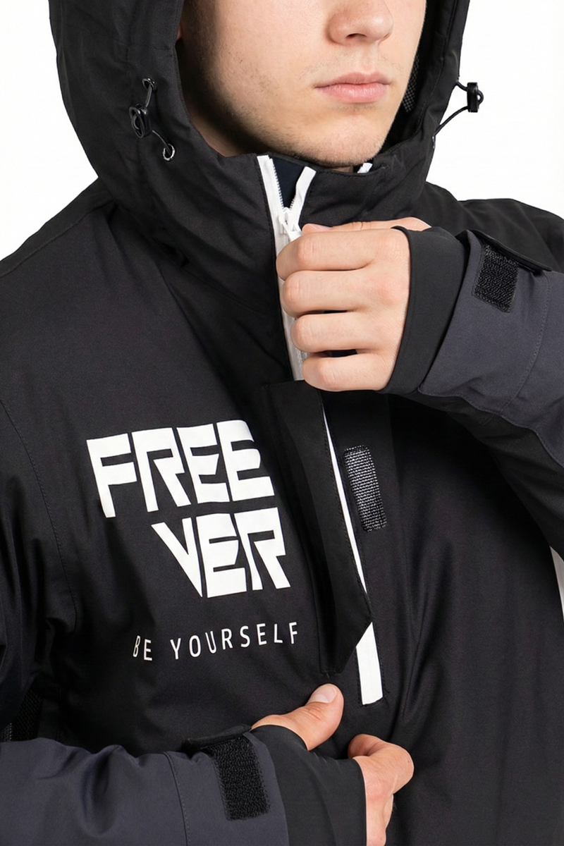 Підлітковий гірськолижний комбінезон Freever NF 21644 у чорному кольорі розрахований на активне катання в складних зимових умовах. Зовнішній матеріал 4-WAY SYSTEM зі 100% поліестеру доповнений мембраною з водонепроникністю 15 000 мм та дихаючою здатністю 15 000 г/м²/24 год, що забезпечує стабільний захист від вологи та комфорт під час руху.