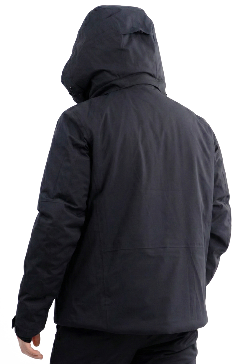 Конструкция куртки дополнена съемным капюшоном с утяжкой, вентиляционными элементами для регулировки микроклимата и центральной молнией с двумя бегунками. Наличие трех внешних и двух внутренних карманов делает модель практичной для горнолыжного спорта и активного зимнего отдыха.