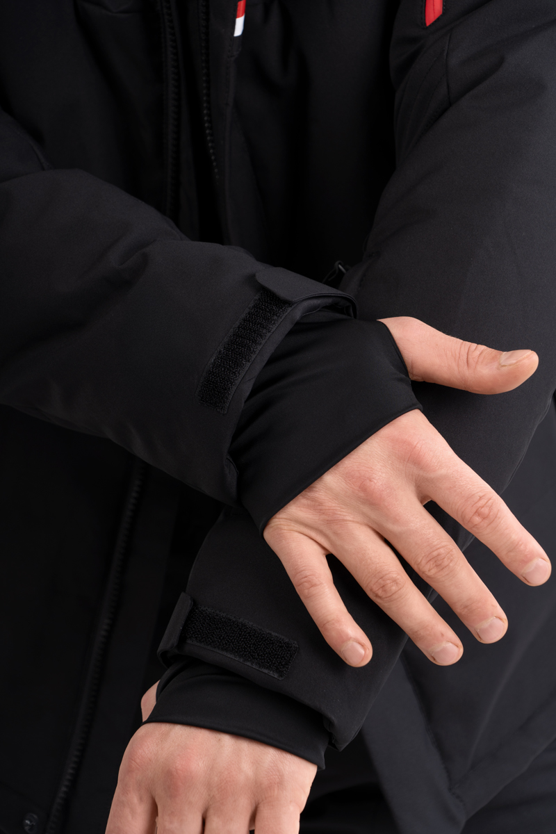 Утеплитель из полиэфирного волокна плотностью 120 г/м² вместе с подкладкой TERMO SYSTEM формирует повышенный уровень теплоизоляции и стабильный комфорт в холодную погоду. Проклеенные швы усиливают защиту от проникновения влаги, а внутренние манжеты в сочетании с регулируемыми внешними манжетами обеспечивают плотную посадку и сохранение тепла.