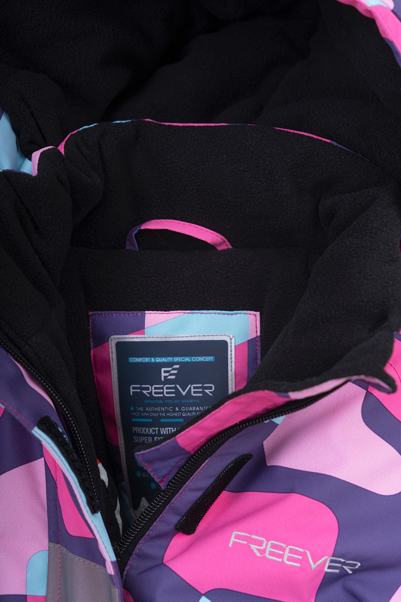 Горнолыжный комбинезон детский Freever SF 21605 розовый - удобный и стильный выбор для открытия нового сезона. Эта замечательная легкая и теплая двухцветная модель создана для катания на лыжах, активных игр в снегу, прогулок в парке или на детской площадке. Внешняя мембранная ткань отлично дышит и хорошо защищает от ветра, снега и воды. Подкладка на микрофлисе с наполнителем Холлофайбер прекрасно согревает и не дает ребенку переохлаждаться во время активных игр на улице. Комбинезон застегивается на молнию с широкой ветрозащитной планкой на кнопках. Резинка по линии талии обеспечивает автоматическую подгонку по фигуре. Внутренние эластичные и наружные регулируемые на липучках манжеты защищают от проникновения холода и снега внутри изделия. Высокий воротник оснащен мягкой защитой подбородка от натирания, а глубокий съемный капюшон регулируется в объеме. Боковые карманы на молниях позволят ребенку взять с собой самые необходимые вещи.
