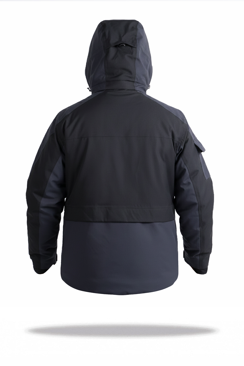 Модель оснащена съемным капюшоном с утяжками-фиксаторами, внутренними манжетами и регулируемыми внешними манжетами для плотной посадки. Центральная молния с двумя бегунками и магнитной фиксацией повышает удобство использования, а защита от ветра делает куртку практичным решением для горнолыжного спорта.