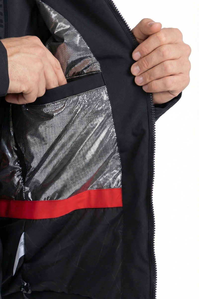 Утеплитель из полиэфирного волокна плотностью 80 г/м² вместе с подкладкой TERMO SYSTEM поддерживает стабильный тепловой баланс и не перегружает изделие объемом. Проклеенные швы усиливают защиту от влаги, а внутренние манжеты и регулируемые внешние манжеты способствуют плотной посадке и сохранению тепла.