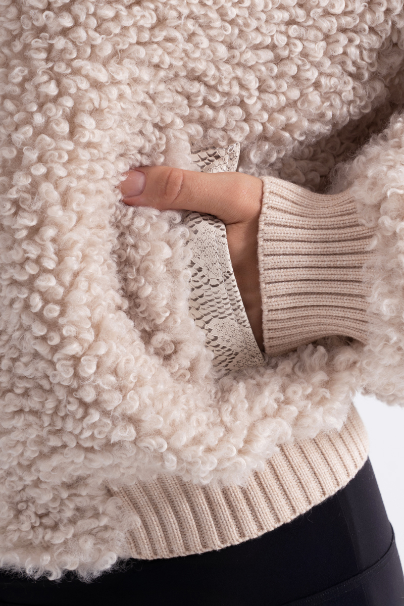 Стильный женский полушубок Freever NF 25638 в бежевом цвете — идеальный выбор для прохладной весны и осени. Изготовленный из искусственного меха на основе синтетического трикотажа, он обладает мягкой текстурой и приятен на ощупь. Короткий фасон «под резинку» с удобным капюшоном придает модели современный и молодежный вид, а два внешних кармана добавляют практичности.