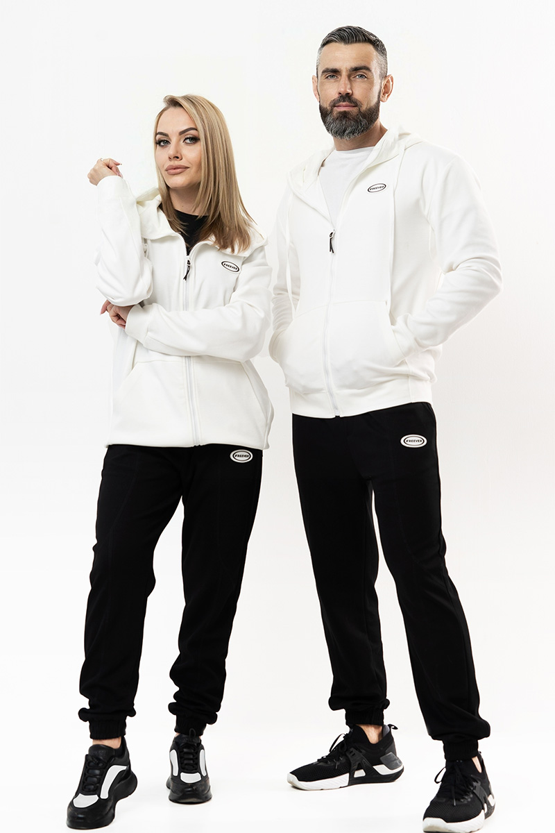 Спортивный костюм мужской Freever WF 8408-8909 белый верх черный низ - идеальный выбор для тех, кто ценит комфорт и стиль. Сделанный из плотного трикотажа без утеплителя, он обеспечивает отличную защиту от холода весной и осенью. Средняя посадка и фасон под резинку гарантируют комфортное ношение как в городе, так и во время занятий физкультурой. Капюшон и пара наружных карманов на кофте добавляют удобства. А на штанах их предусмотрено четыре: два боковых врезных и два накладных сзади. Кофта застегивается на молнию. Пояс штанов дополнен утягивающим шнурком. Независимо от вашего вида активности, костюм подарит чувство уверенности и элегантности.