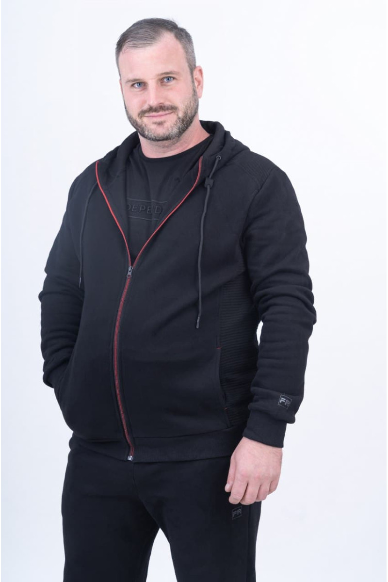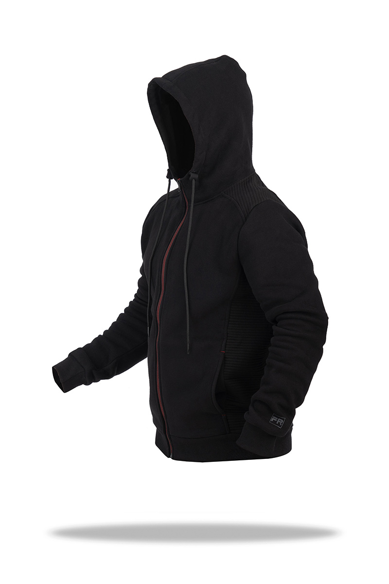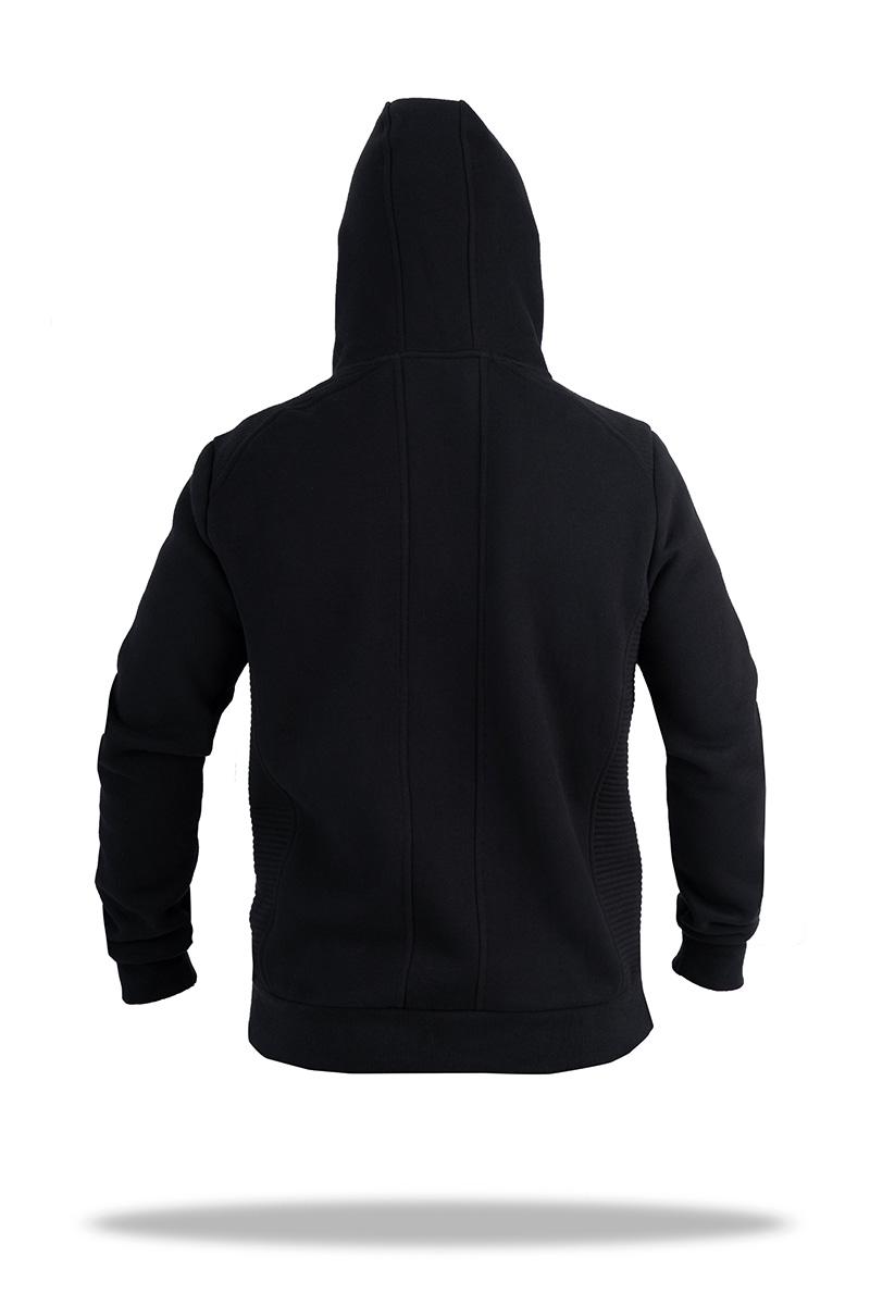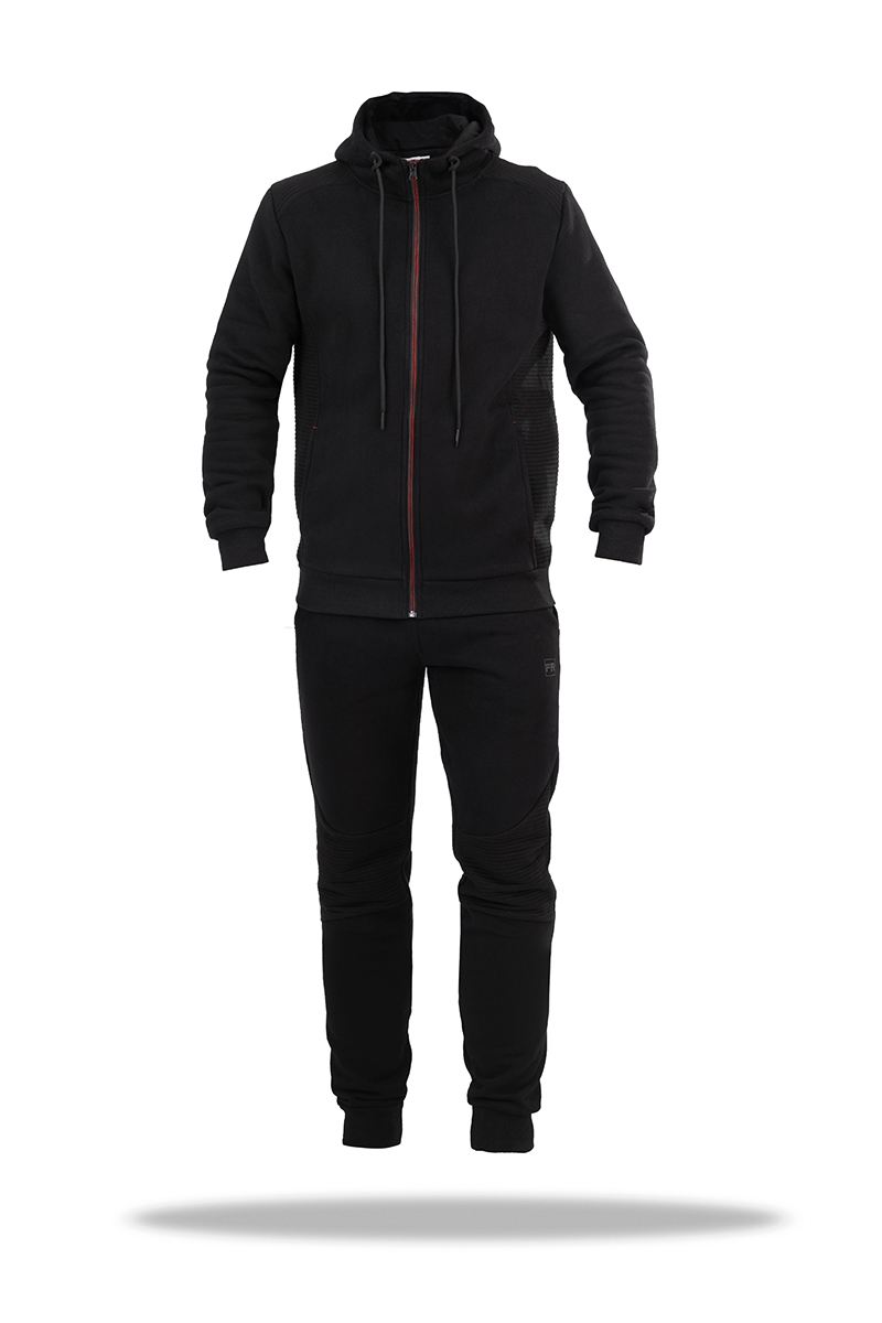 Cпортивный костюм мужской Freever SF 8605 черный - стильный теплый комплект для спорта и активного отдыха, для дома, путешествий, прогулок и походов по магазинам. Кофта и брюки изготовлены из плотного и мягкого трикотажа на основе хлопка. Изделия очень удобны в носке: дышат, хорошо согревают, эластичны, не теряют форму и презентабельный внешний вид даже после многократных стирок. Брюки прямого кроя чуть зауженные к низу. Посадка средняя. Пояс на резинке дополнен утягивающим шнурком. Есть два боковых прорезных кармана и один задний на молнии. Колени декорированы гофрированными вставками из плотного трикотажа. Кофта прямого кроя с молнией на всю длину имеет: регулируемый капюшон, манжеты на рукавах, два боковых кармана и эластичную трикотажную резинку по низу изделия. На плечах и с боков - широкие гофрированные трикотажные вставки.
