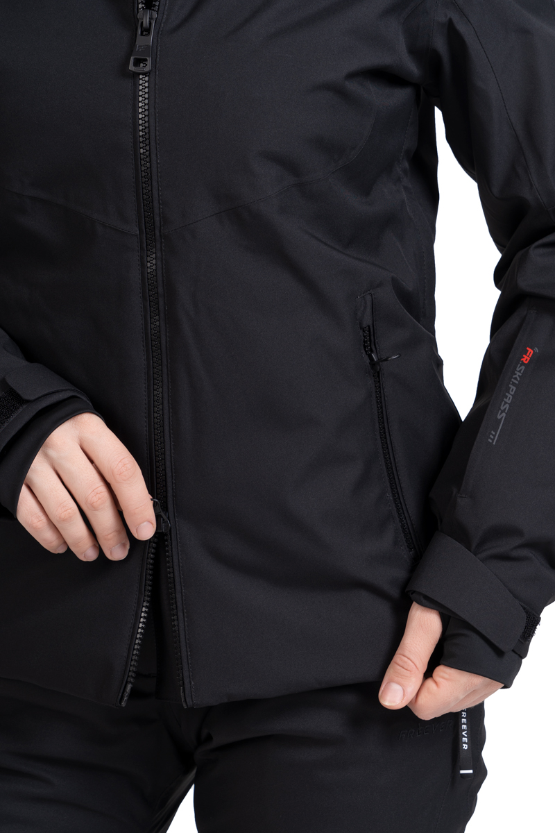 Женская куртка FREEVER NF 21648 в черном цвете создана для активного использования в холодную и влажную погоду. Внешний материал 4-WAY SYSTEM из 100% полиэстера сочетает износостойкость и эластичность, а мембрана с показателями водонепроницаемости и паропроницаемости 15 000 обеспечивает надежную защиту от осадков и ветра без потери комфорта во время движения.