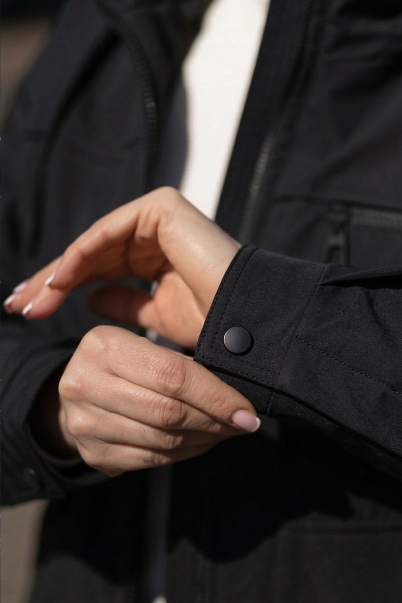 Конструкция модели предусматривает съемный капюшон, который позволяет адаптировать куртку к погодным условиям и стилю образа. Центральная молния с двумя бегунками обеспечивает удобство при использовании и свободу движений. Практичность дополняют функциональные карманы: два внешних для быстрого доступа к необходимым вещам и один внутренний для хранения мелких предметов.