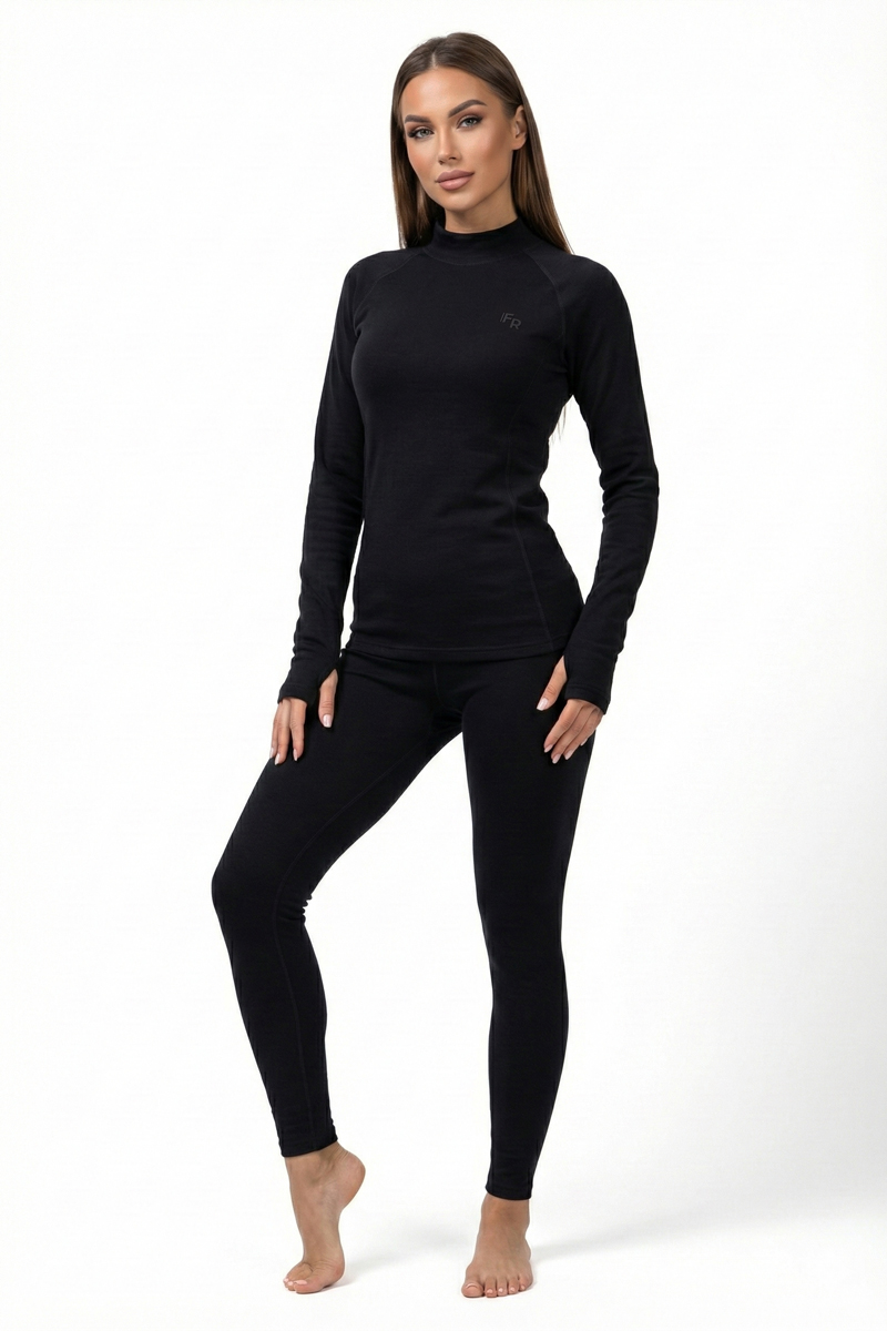 Плоские швы минимизируют трение и повышают удобство при ношении под верхней одеждой. Лаконичный дизайн и универсальный черный цвет делают комплект практичным решением для ежедневного использования в холодное время года.