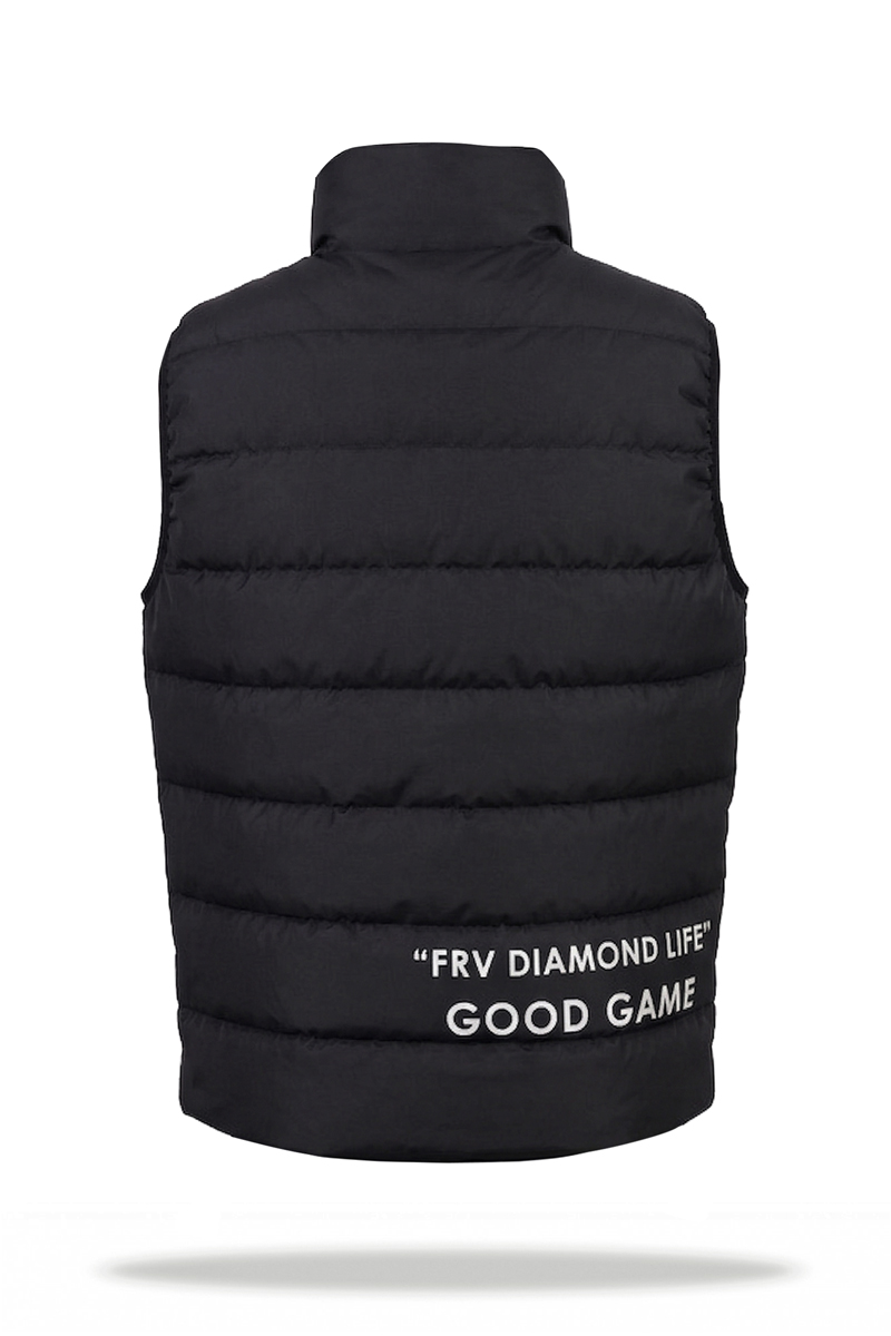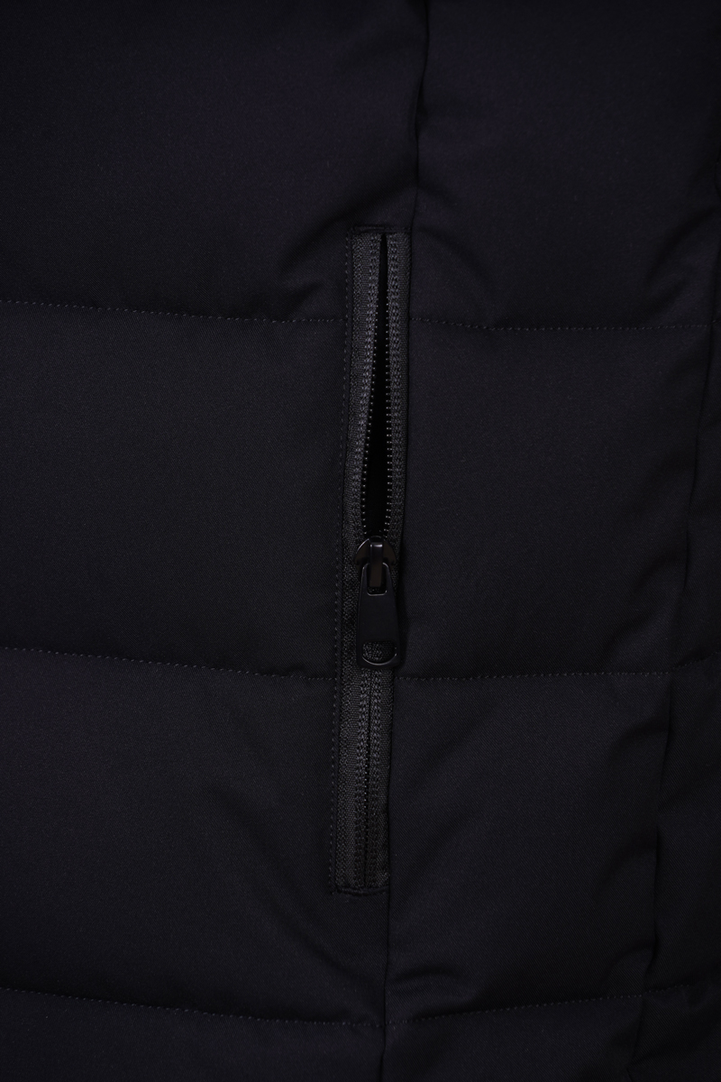 Модель оснащена надійною блискавкою з двома бігунками, що дозволяє регулювати посадку та вентиляцію. Відсутність капюшона робить жилет зручним для багатошарових образів у стилі casual або sport. Функціональність підсилюється продуманою системою кишень — дві зовнішні на блискавках і одна внутрішня для зберігання необхідних речей. Стриманий чорний колір і лаконічний дизайн із фірмовим брендингом підкреслюють сучасний характер моделі.