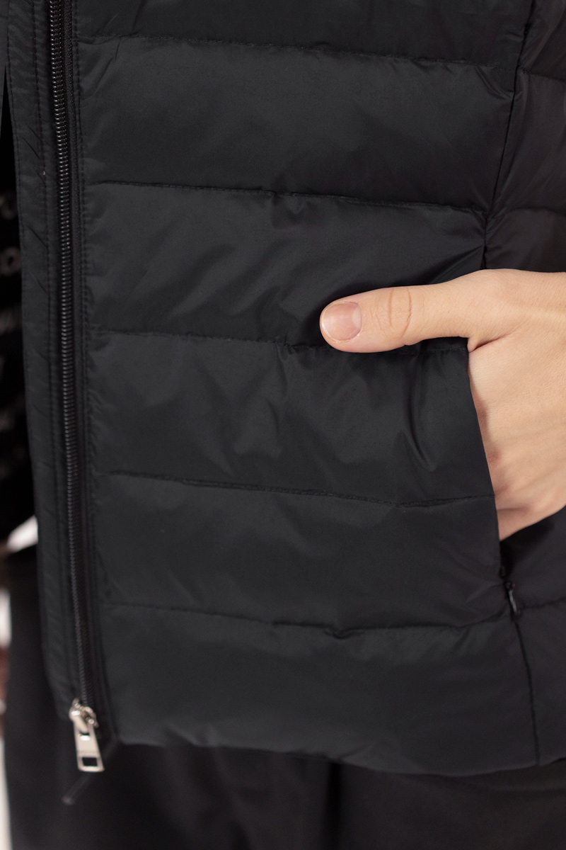 Чорний колір робить жилет базовим елементом гардеробу, а приталений крій і високий комір надають силуету акуратності та елегантності. Функціональні кишені та надійна блискавка забезпечують комфорт у повсякденному носінні.