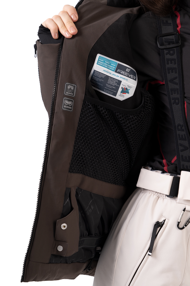 Жіноча гірськолижна куртка Freever NF 21630 у бежевому кольорі створена для інтенсивного катання та впевненого захисту в умовах змінної погоди. Міцний матеріал 4-WAY SYSTEM із 100% поліестеру поєднує еластичність і зносостійкість, а мембрана забезпечує водонепроникність 15 000 мм та високі показники дихання — 15 000 г/м²/24 год. Усередині використано антистатичний мікрофліс та утеплювач 120 г/м² з полізифірного волокна, що гарантує комфорт і стабільне тепло під час активності.