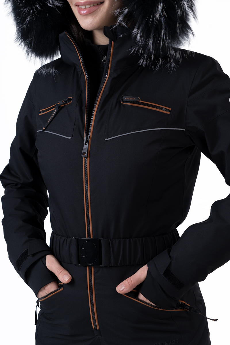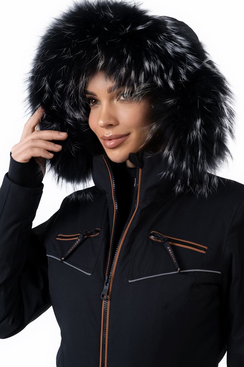 Продумані деталі - проклеєні шви, вентиляційні зони, регульований пояс, знімний капюшон і хутро, снігозахисна спідниця та водонепроникні блискавки - забезпечують зручність та надійний захист. Чорний колір з контрастними вставками підкреслює спортивний та елегантний стиль.