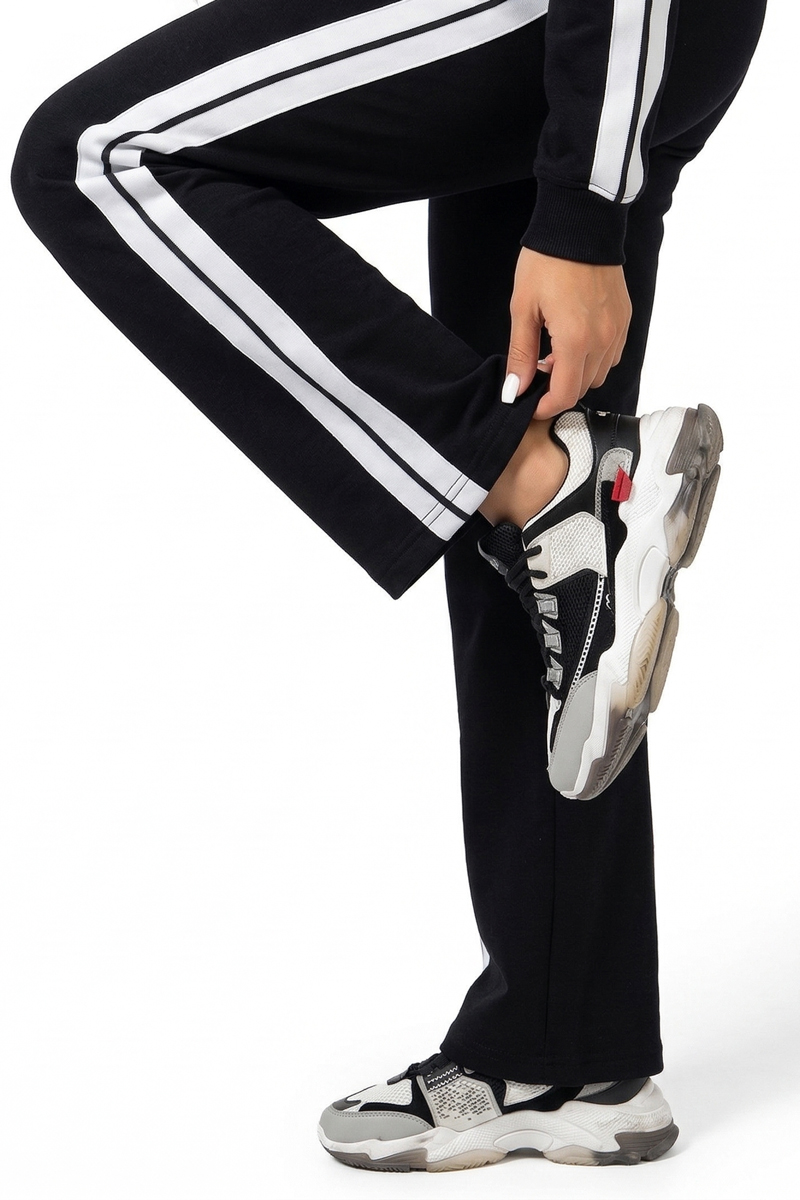 Жіночий спортивний костюм Freever NF 5721 у чорному кольорі поєднує casual і спортивний стиль для щоденного використання в демісезонний період. Комплект складається з куртки та штанів із посадкою під резинку, що забезпечує комфортну фіксацію та свободу рухів. Матеріал на основі бавовни з додаванням поліестеру та спандексу приємний до тіла, добре тримає форму й адаптується до активного ритму.